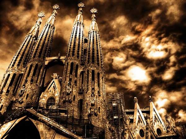 Храм строили давно, аж с 1882 года. Уж и фундамент заложили, но по сметам не сошлись, и архитектор Вильяр заказчика Бокабелья "послал". Стройка встала. С горя бедный Бокабелья лёг спать, и вот будто бы приснился ему прекрасный блондин с синими глазами. Который пришёл спасти этот собор Святого Семейства - Саграда Фамилиа. А после, в гостях он этого спасителя и увидал, и блондин и синие глаза, и вроде бы строить умеет. Здрасьте, Гауди! Все ахнули - знамение! Могет быть.., а могет и не снился никто, Бокабелья был трезвый человек. Смекнул - перед нами фантик-начинашка. Учился в Академии у того же Вильяра. Навык есть, а апломба ноль. Дешевле выйдет и проблем с ним не будет... Если бы знал он, на что напоролся!